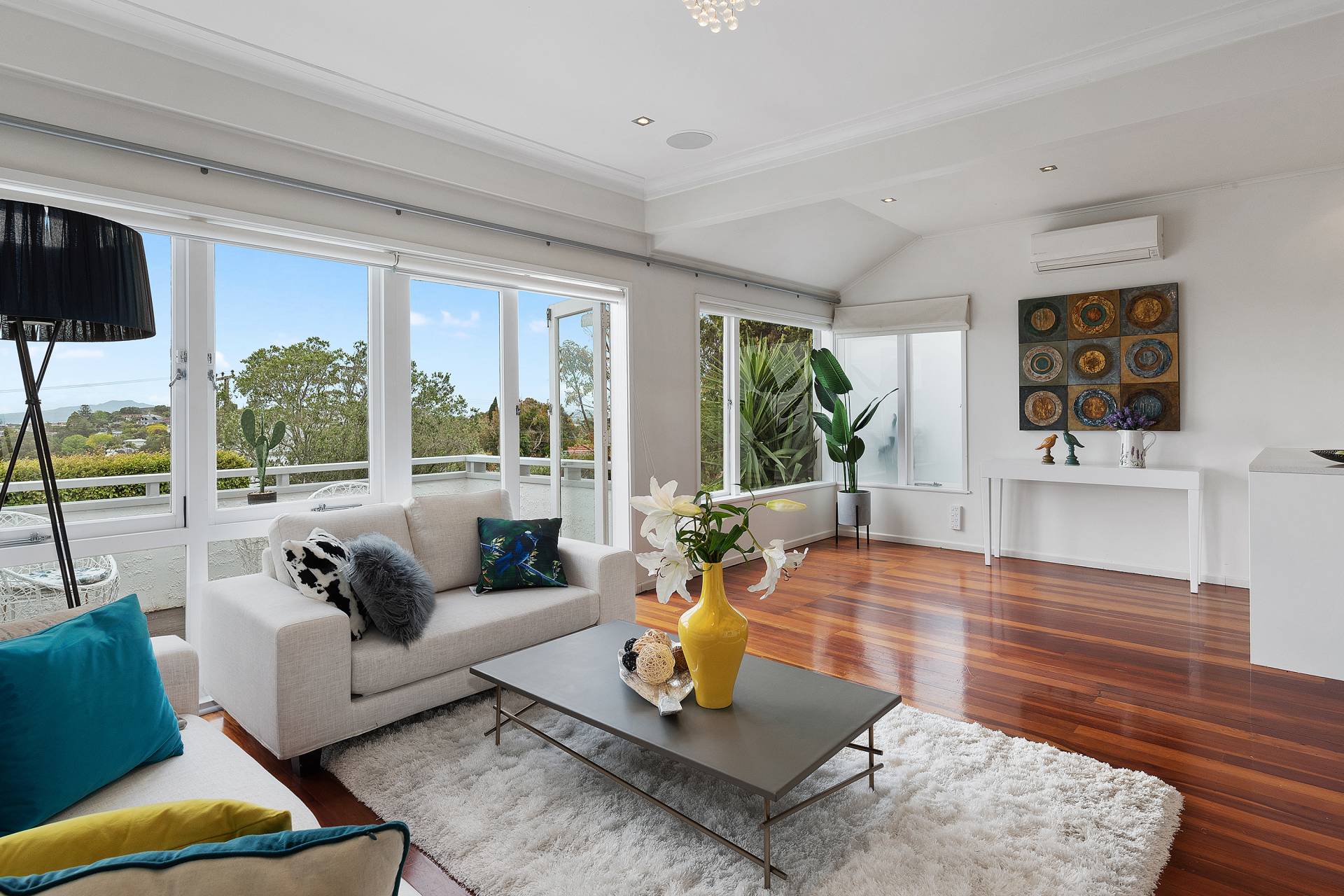 The lounge has 2 heating options- a Rinnai Gas fire & a heat pump giving this home a lovely warm feeling. Enjoy the wonderful indoor outdoor flow to expansive decks with views to Takapuna. This has a large internal garage and is simply a must see.